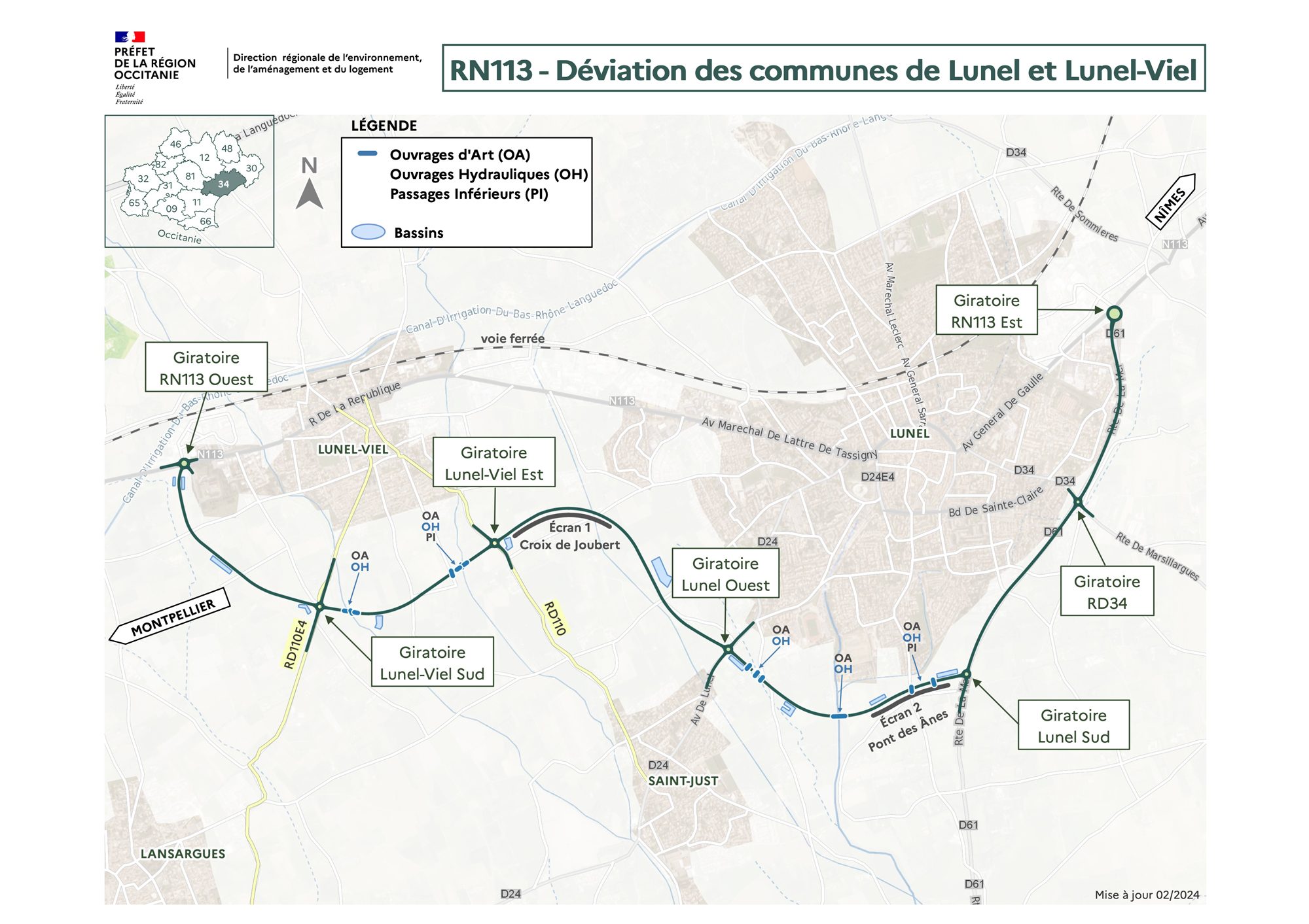 A terme, la RD61 existante entre le giratoire Lunel sud et le giratoire RN113 sera intégrée au réseau routier national et sera partie intégrante de la future RN113.